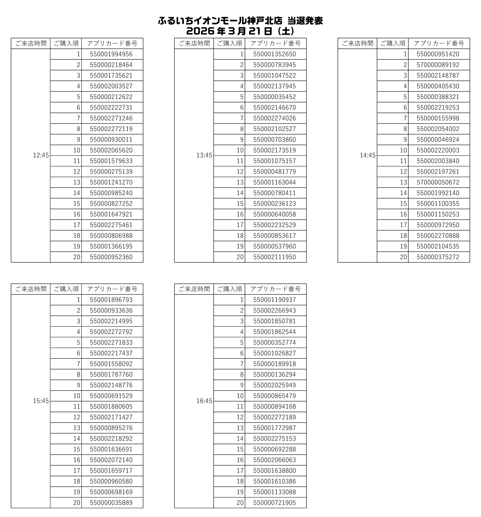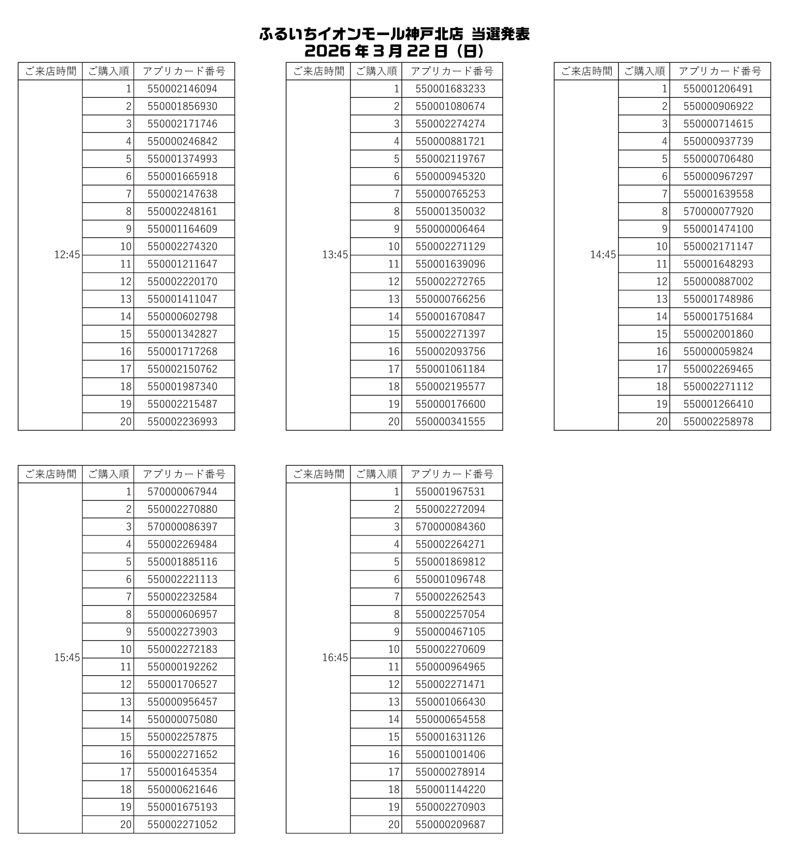 ふるいちイオンモール高岡店 神戸北店 事前抽選当選発表