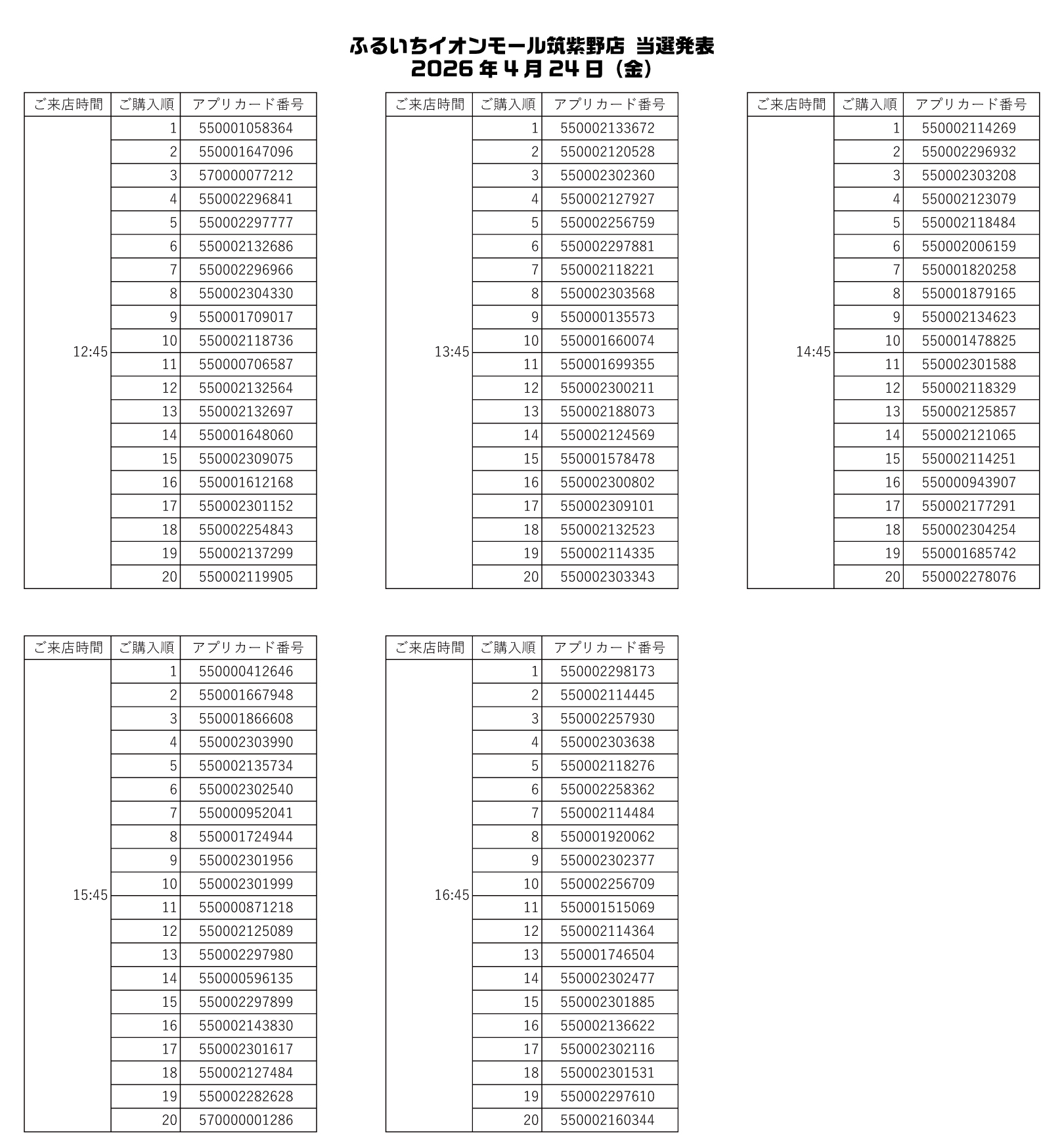 ふるいちイオンモール筑紫野店 茨木店 事前抽選当選発表