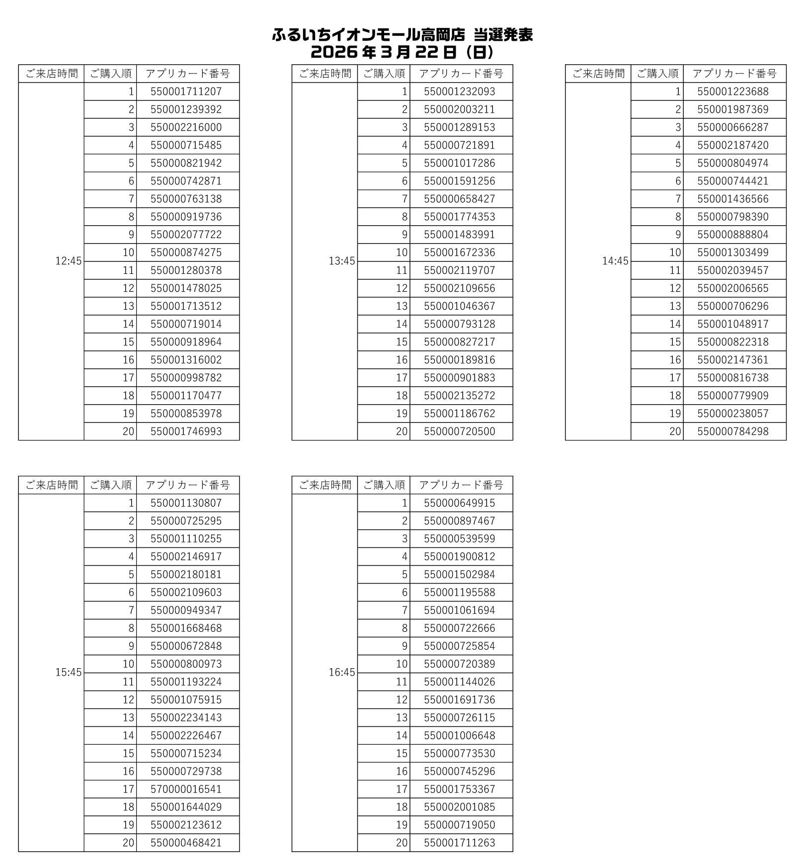ふるいちイオンモール高岡店 神戸北店 事前抽選当選発表