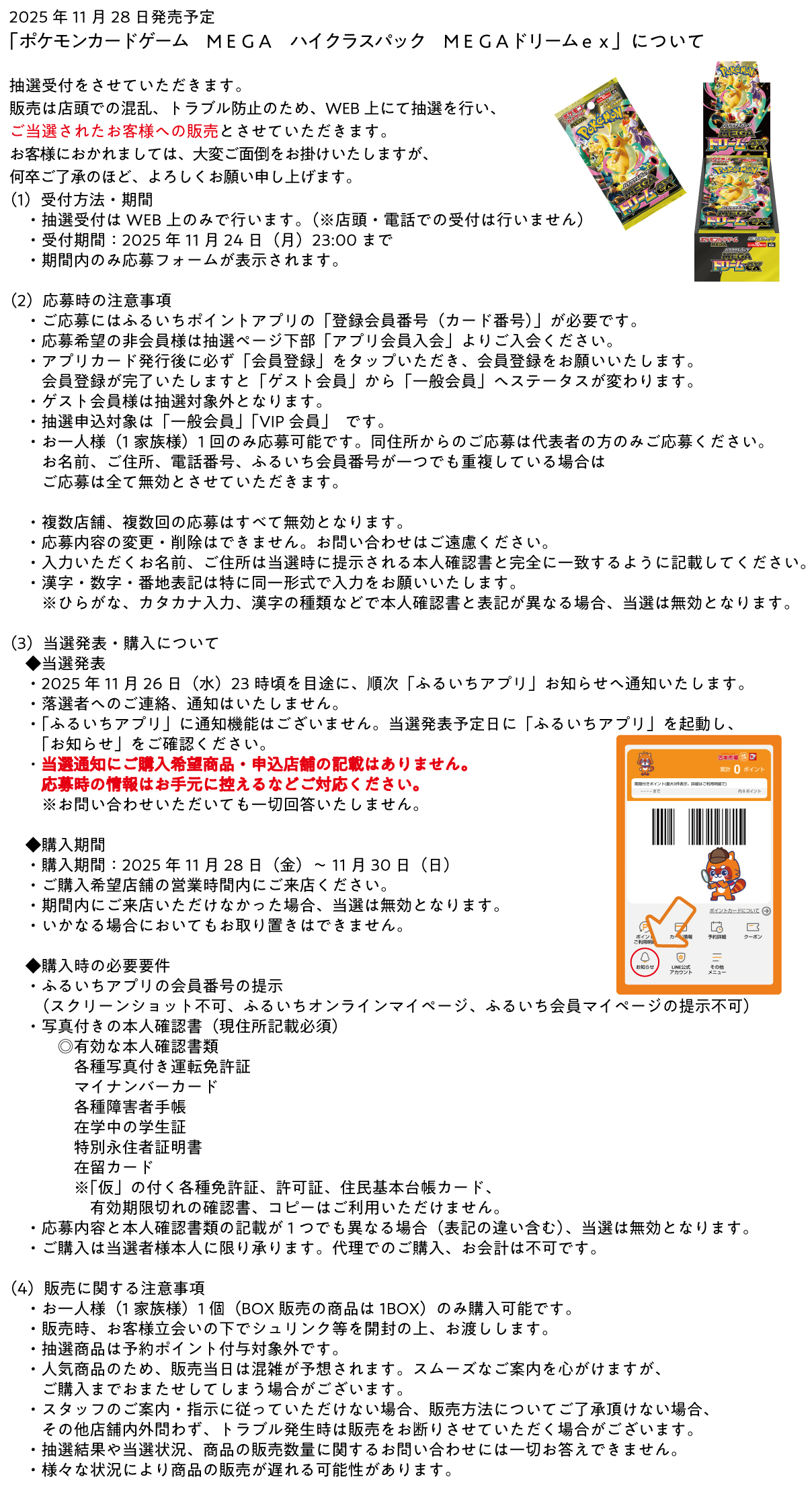 ポケモンカードゲーム MEGA ハイクラスパック MEGAドリームex 抽選受付について